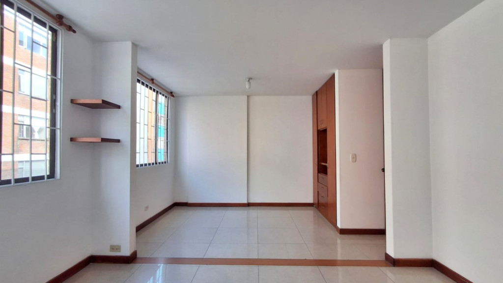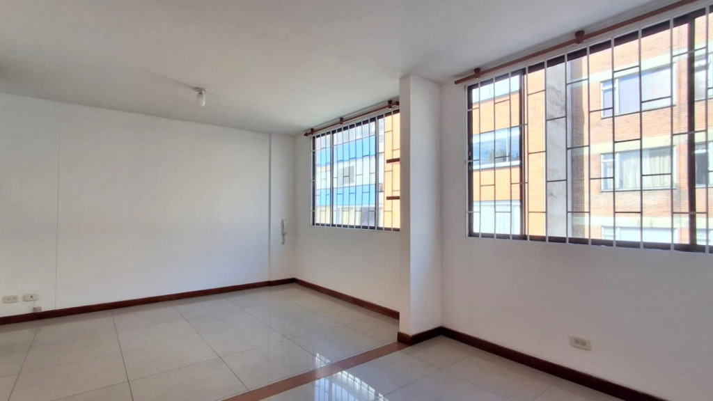 Apartamento de 74 M2, de vista interior, ubicado en Segundo piso con buena iluminación natural, cuenta con sala comedor, estudio, dos alcobas con closet, dos baños, pisos en cerámica, cocina integral a gas, depósito y garaje. El edificio cuenta con salón social, vigilancia 24/7, citófono, ascensor y CCTV. Cerca a Avenida Carrera 30, Avenida Calle 53, Avenida Calle 26, Centro Comercial Galerías, Transmilenio, Colsubsidio El Cubo, zona residencial.
