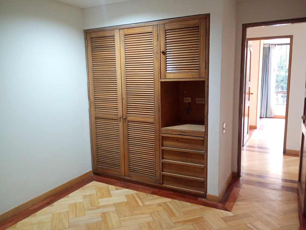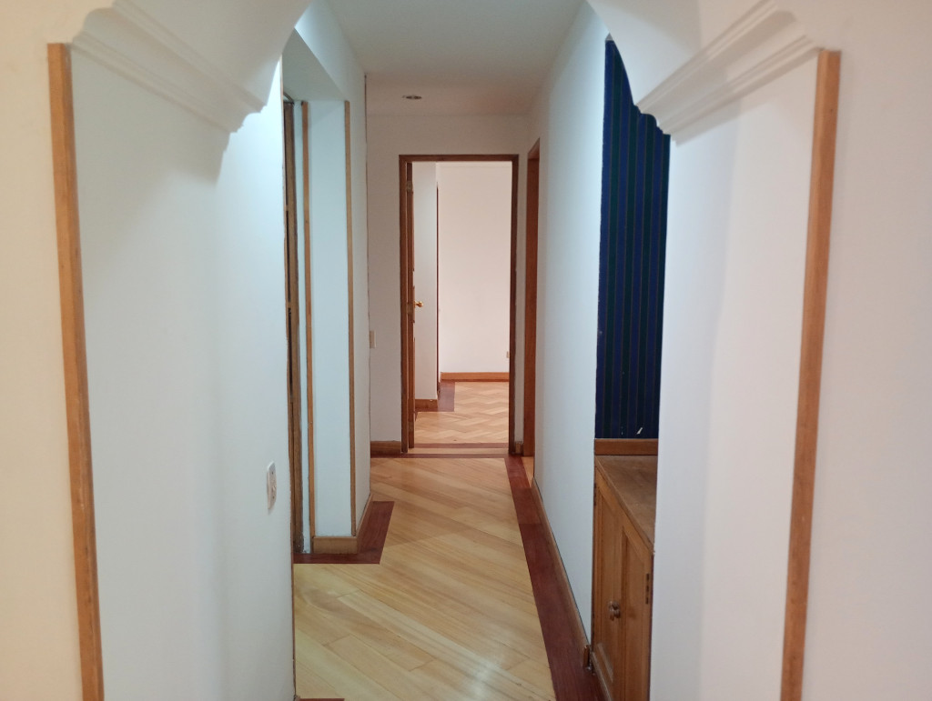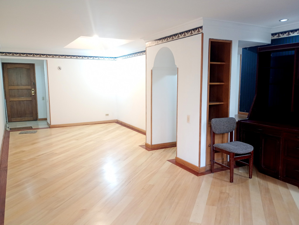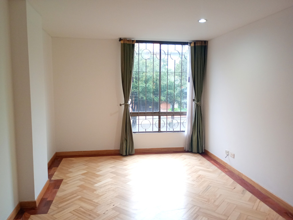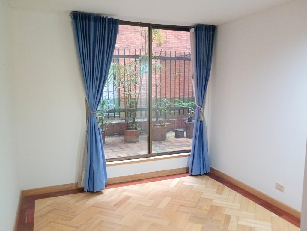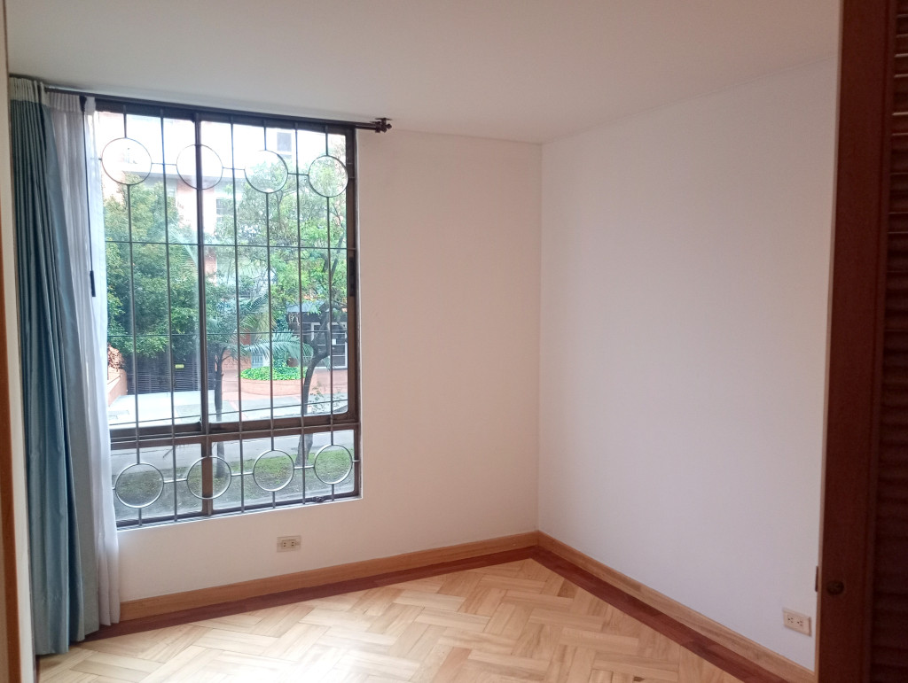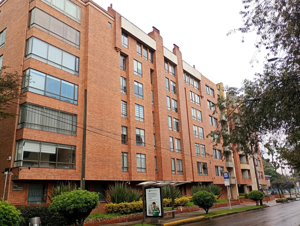 Apartamento de 116 Mts, vista exterior, sala comedor con chimenea, cortinas, pisos en madera laminada, cocina integral mixta, horno eléctrico, patio descubierto, calentador a gas, estudio, baño auxiliar, alcoba principal con baño privado, garaje doble cubierto en linea privado y deposito. El edificio cuenta con salón comunal, citófono, ascensor vigilancia 24/7 у CCTV. Ubicado sobre La Calle Ciento Siete y Carrera Cincuenta y tres, a pocas cuadras de la la Avenida Calle Ciento Dieciséis, Calle Cien y Avenida Suba.