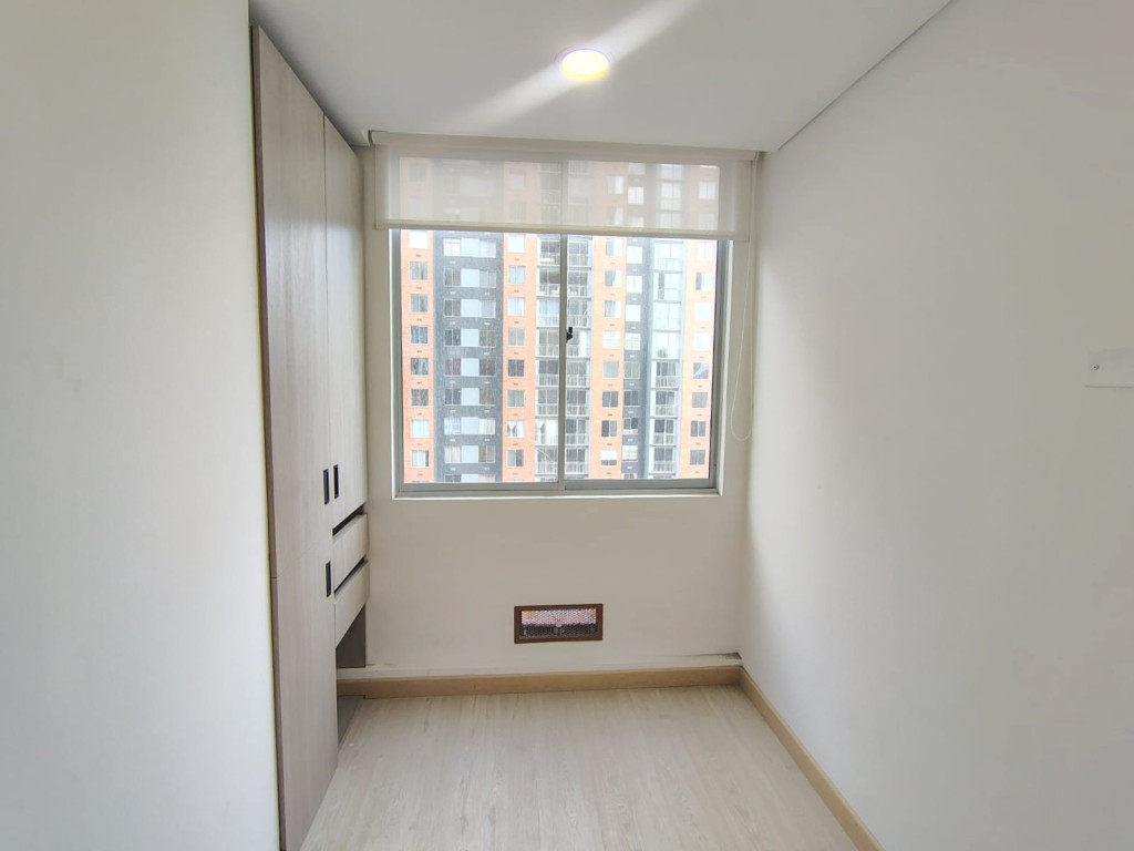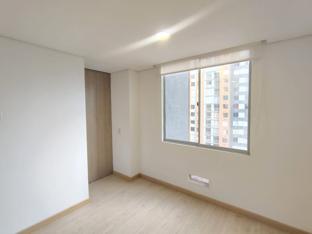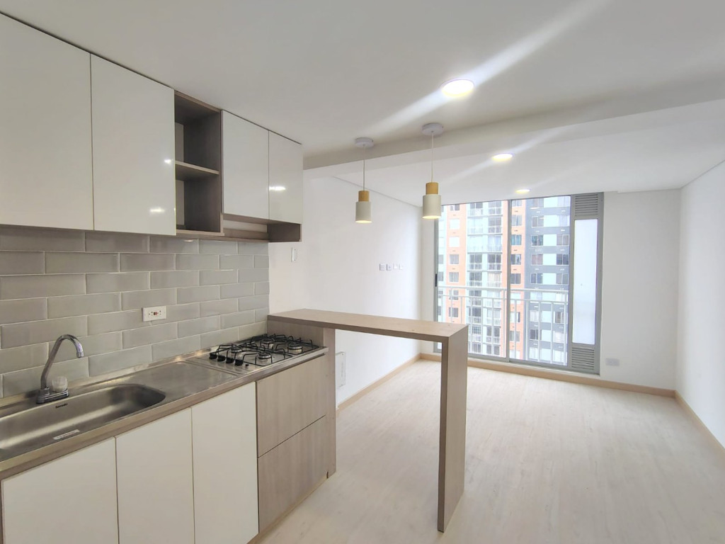 Lindo apartamento para estrenar, de vista interior, de 32 M2, ubicado en piso 9 con excelente iluminación natural, cuenta con sala comedor, dos alcobas con closet, pisos laminados, un baño y cocina integral tipo americano a gas. El conjunto cuenta con salón comunal, gimnasio, parque infantil, terraza comunal, zona BBQ, vigilancia 24/7, ascensor y CCTV. Cerca a Calle 6, Avenida Calle 3ra, Carrera 50, Avenida Carrera 30, parque público Primavera, Transmilenio, rutas del Sitp y zona residencial.