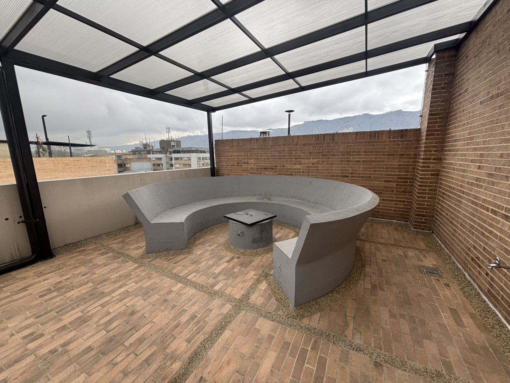 Cod.3228.Lindo y acogedor apartaestudio de 39 mts, tercer piso, exterior, iluminado. Edificio estrato 6, con vigilancia 24 horas, salón social, gimnasio, terraza bbq, ascensor, planta eléctrica suplencia total, parqueaderos de visitantes. Sala comedor, baño social, cocina integral abierta, espacio para instalar lavadora, alcoba abierta con closet y baño privado, parqueadero cubierto y depósito. Sector residencial y exclusivo, rodeado de lindas zonas verdes, a 5 minutos de C.C. Unicentro, cerca de Country Club y hotel La Fontana; vías de acceso, Carrera 15, Calle 127, Calle 116, Carrera 19. Facilidad de acceso a transporte público.