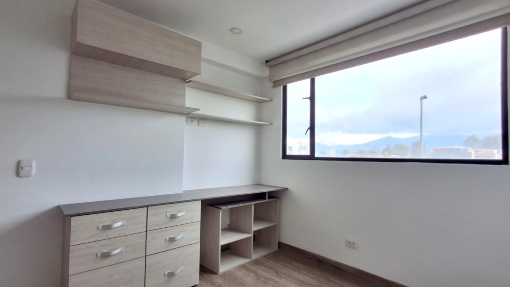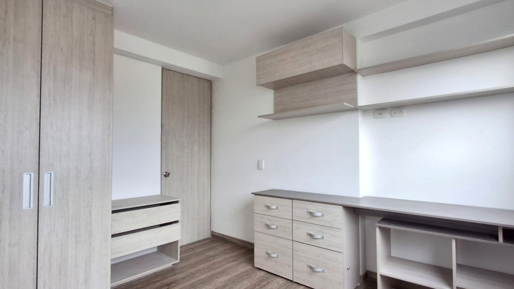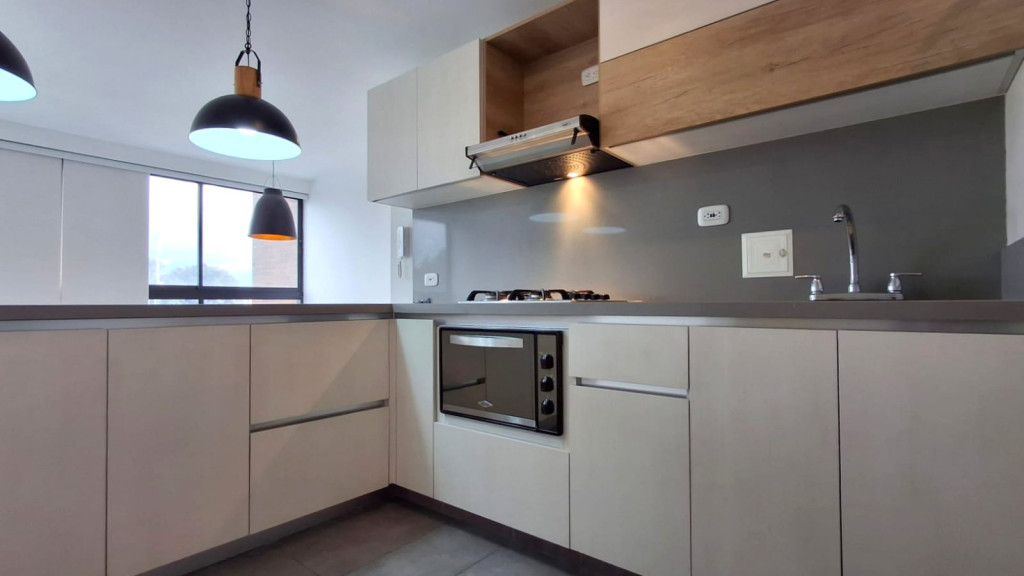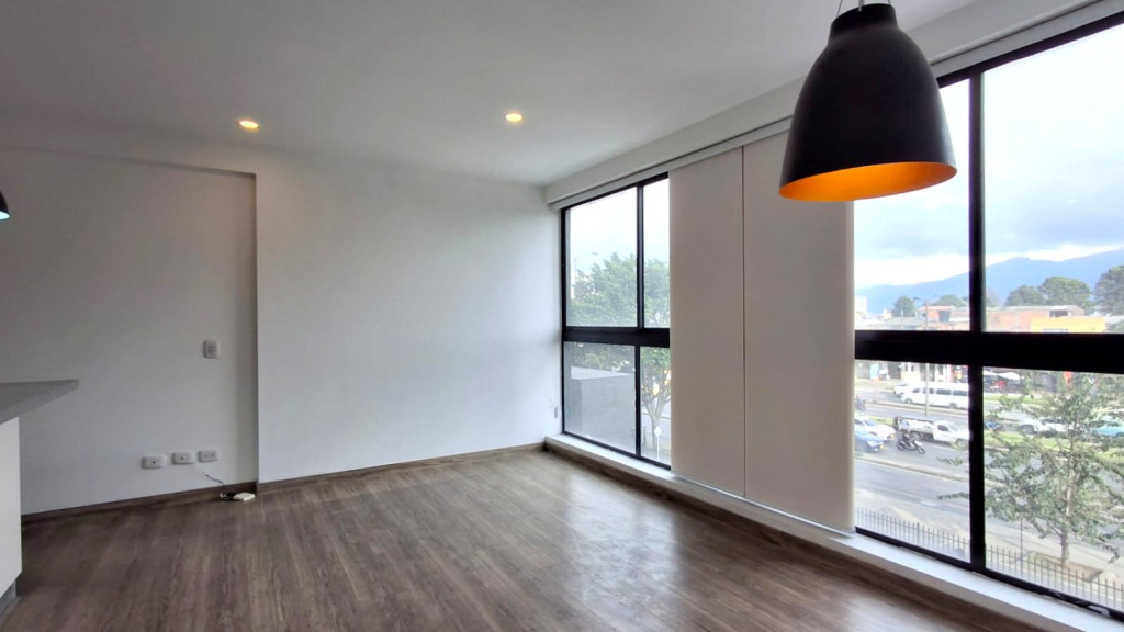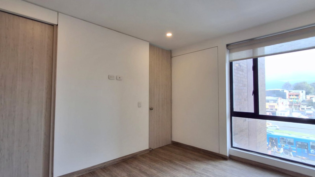 Apartamento de 54 M2, ubicado en Cuarto piso, de vista exterior con excelente iluminación natural, cuenta con sala comedor, dos alcobas con closet, pisos laminados, dos baños, cocina integral a gas, horno eléctrico y garaje descubierto. El edificio cuenta con salón comunal, gimnasio parque infantil, terraza comunal, zona BBQ, caldera, vigilancia 24/7, citófono y ascensor. Cerca a Avenida Boyaca, Avenida Calle 72, Avenida Calle 80, Centro Comercial Titan, D1, Ara y zona residencial.