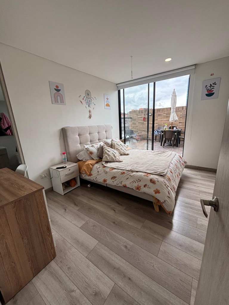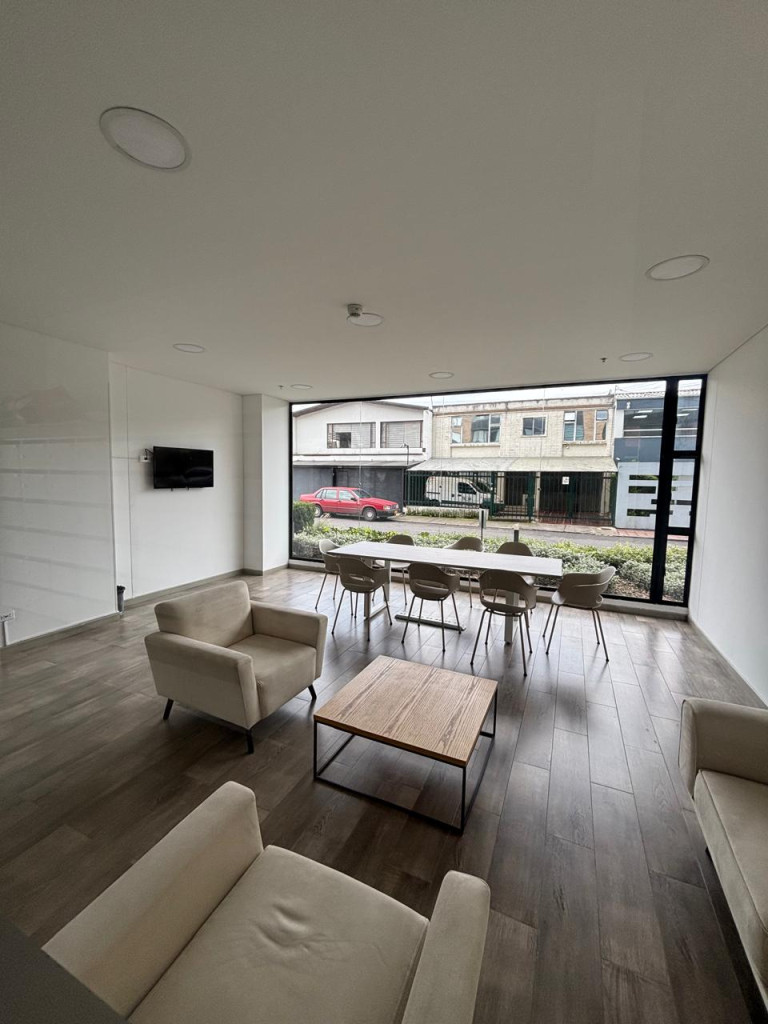 Descubre este elegante apartamento ubicado el barrio Santa Ana. Se encuentra en el piso 5 con acceso por Ascensor, con iluminación natural y el piso de madera laminada cuenta con Sala comedor amplia, cocina integral abierta, zona de lavandera independiente, 1 habitación con closet y baño privado, 1 social y 52.4 metros cuadrados + Terraza, ofrece una vista exterior que te cautivará. Además, cuenta con gimnasio, Zona BBQ, Lavandería Comunal, parqueadero de visitantes, vigilancia privada 24*7 y parqueadero propio cubierto. Su ubicación cercana a supermercados, colegios y transporte público lo convierte en una excelente opción para vivir o invertir. ¡No pierdas esta oportunidad única!