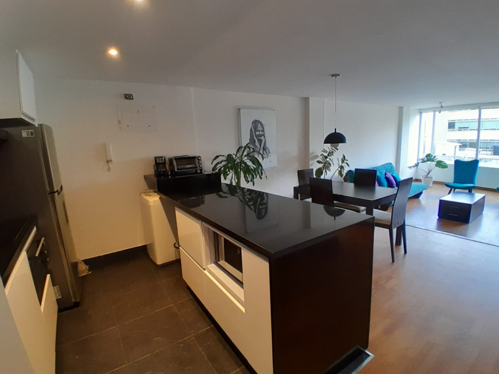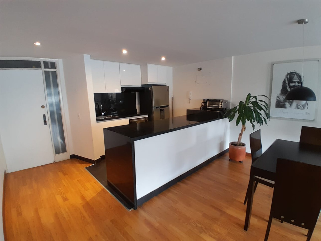 Descubre este encantador apartamento ubicado en una zona privilegiada. Con 56.80 metros cuadrados, cuenta con 1 habitación, 1 baño y 1 parqueadero, 1 deposito, ofrece un ambiente acogedor con piso laminado y una cocina integral totalmente equipada electrica de inducción, calentador electrico, Disfruta de la iluminación natural que resalta cada rincón, junto a la comodidad de un closet y persianas. Además, brinda seguridad con vigilancia privada 24/7, ascensor y escalera de emergencia. Su ubicación sobre vía secundaria facilita el acceso a transporte público, supermercados y parques cercanos. Vive la experiencia de confort y tranquilidad en este hogar ideal.