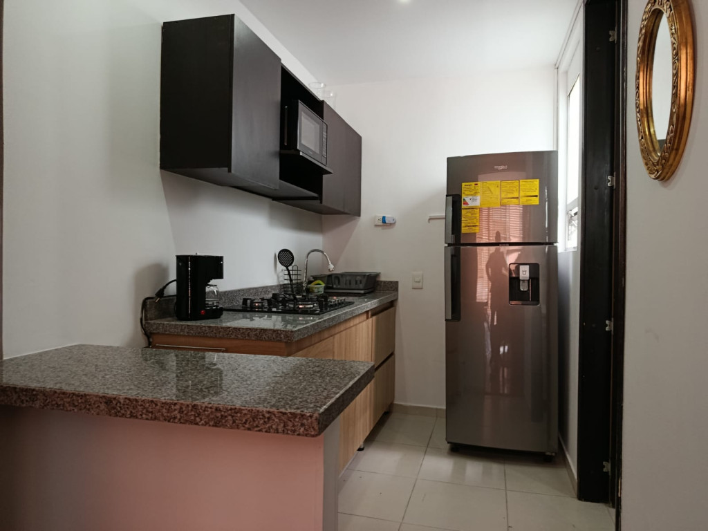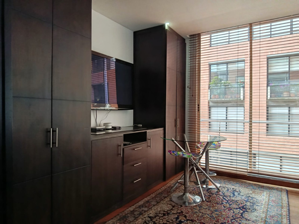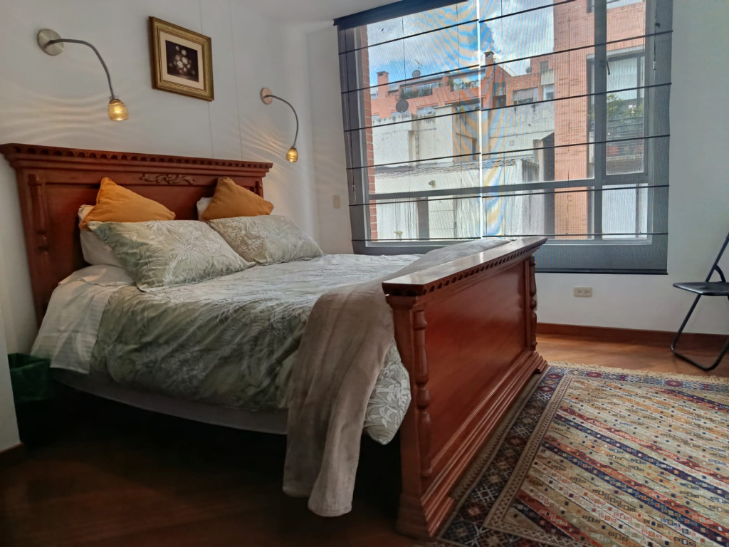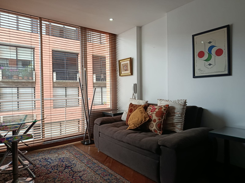 Cod.3224. Acogedor apartamento amoblado de 50 mts, tercer piso, interior, sol de tarde. Edificio con vigilancia 24 horas, salón social. Sala comedor con balcón, cocina integral a gas, baño social, zona de lavandería, alcoba con closet y baño privado, parqueadero. Sector residencial y tranquila, a media cuadra de parque el virrey, cerca de la Clínica del Country, Carulla, Zona T; vías de acceso, carrera 15, autopista norte, calle 85. El valor publicado incluye administración, servicios públicos y t.v. por cable.