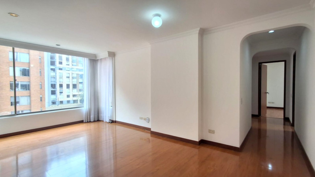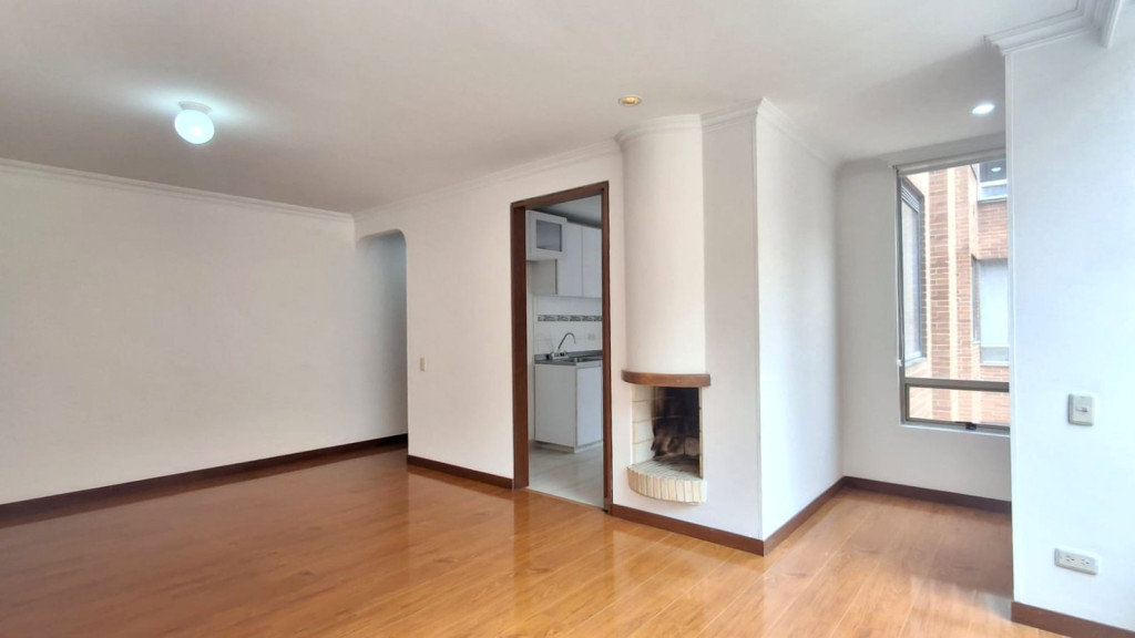 Apartamento de 72 M2, de vista exterior, ubicado en Cuarto piso con excelente iluminación natural, cuenta con sala comedor, chimenea, estudio, tres alcobas con closet, pisos en madera laminada, dos baños (p/pal con tina), cocina integral a gas y garaje cubierto. El conjunto cuenta con salón comunal, parque infantil,, vigilancia 24/7, citofono, ascensor y CCTV. Cerca a Avenida Calle 68, Carrera 50, Parque Simón Bolívar, Biblioteca Virgilio Barco, zona residencial y rutas del Sitp.