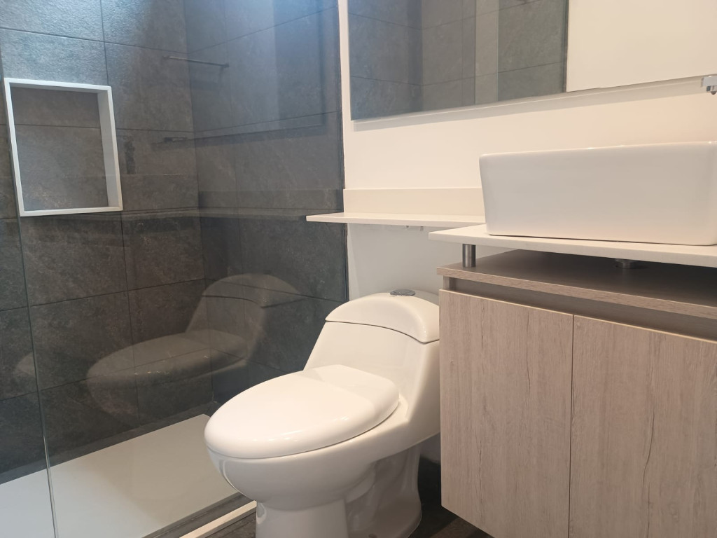 Excelente apartamento para estrenar de 56 m², ideal para quienes buscan comodidad y diseño moderno. Cuenta con 1 alcoba con baño privado, baño social, sala de estar y sala–comedor en un mismo ambiente, con excelente distribución. La cocina está completamente equipada con estufa a gas, lavavajillas, horno y caldera, además de contar con espacio para nevecon. Dispone de zona de lavandería amplia e independiente con punto para secadora. El apartamento ofrece pisos en madera, vista exterior y un balcón amplio, perfecto para disfrutar del aire libre. Incluye 1 garaje y depósito. Ubicado en edificio con ascensor, vigilancia 24/7, garajes para visitantes, terraza con zona BBQ y salón comunal, en un sector estratégico cerca de vías principales y zonas comerciales, con excelente conectividad. El canon incluye el valor de la administración, lo que facilita el control de gastos.