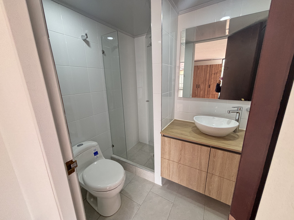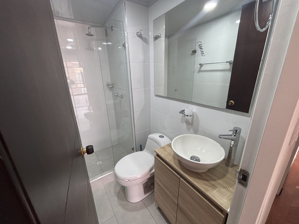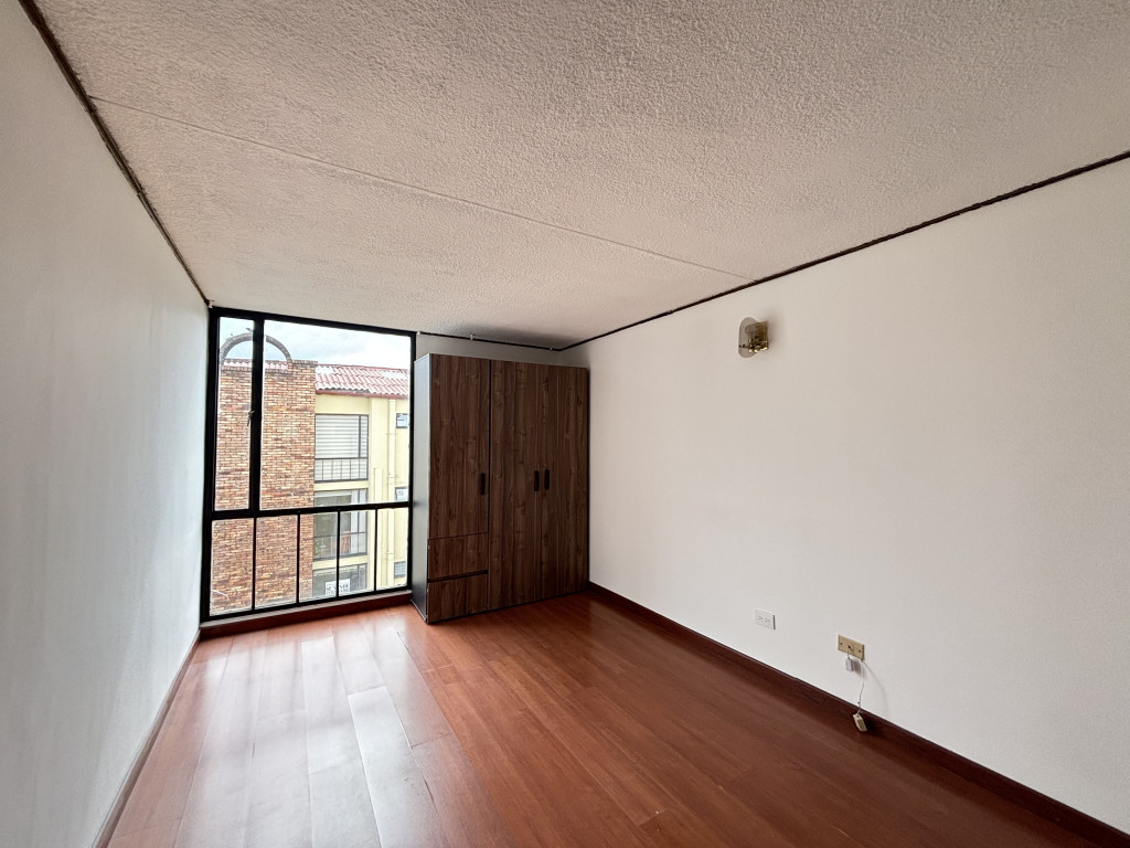 Cod.3215. Acogedor apartamento de 71 mts, quinto piso, iluminado con acceso por escaleras. Conjunto estrato 4, con vigilancia 24 horas, salón social, parqueaderos de visitantes, lindas zonas verdes. Sala comedor con chimenea tradicional, 3 habitaciones con closet, principal con baño privado, 2 baños remodelados uno de ellos en la alcoba principal, cocina integral eléctrica, zona de lavandería, parqueadero descubierto. Sector residencial, cerca de zonas verdes, iglesia Santa Maria Magdalena, colegio Liceo de Cervantes, estación de transmilenio calle 161; vías de acceso, carrera 19, calle 161, autopista norte, facilidad de acceso a transporte público.