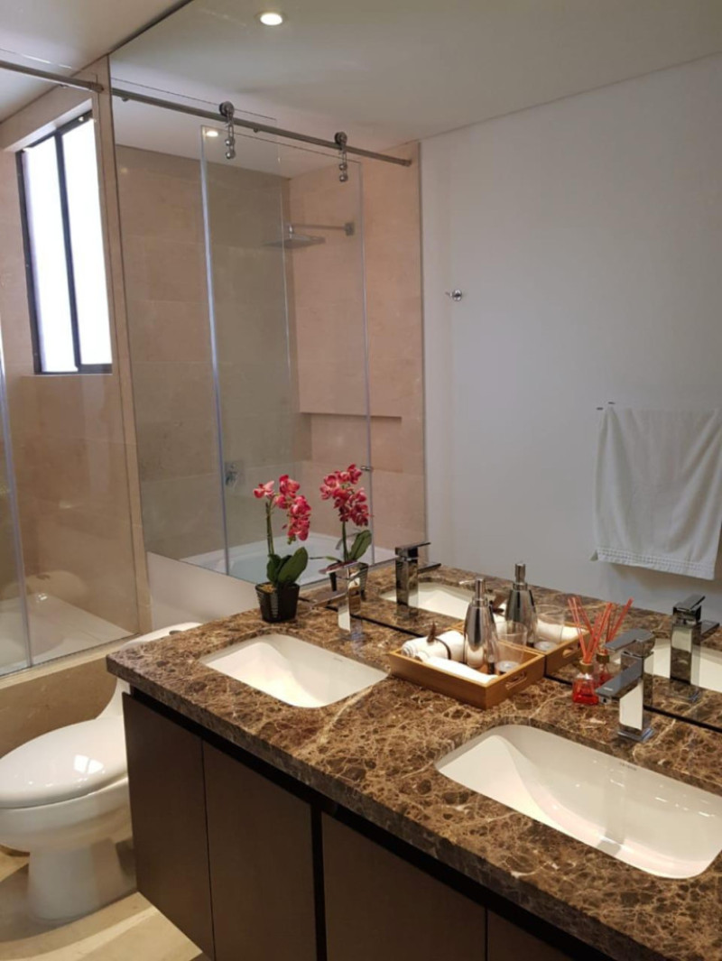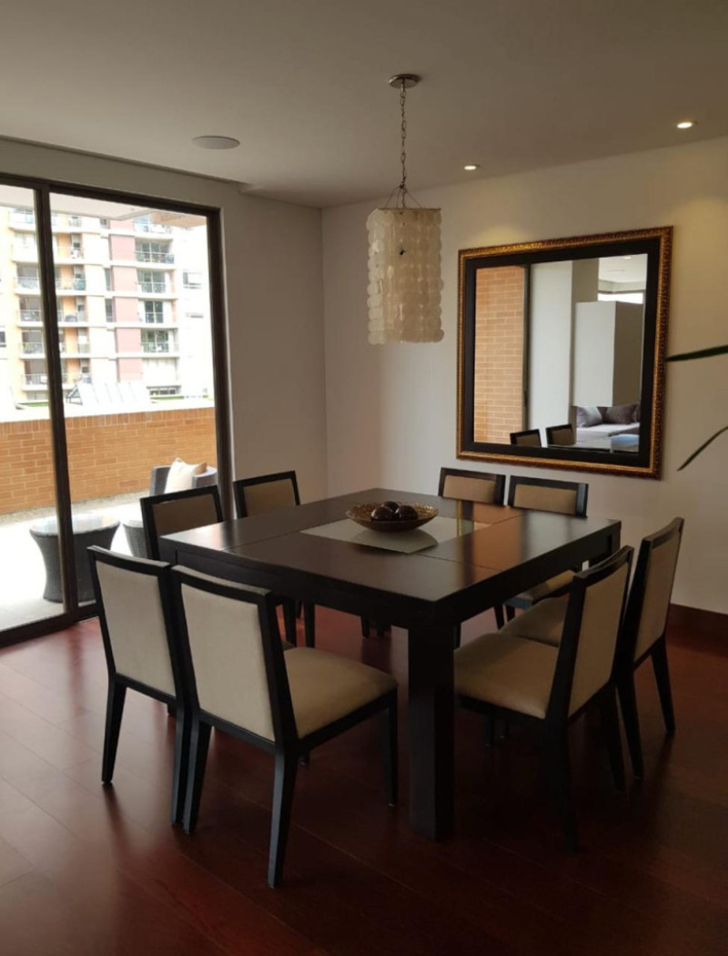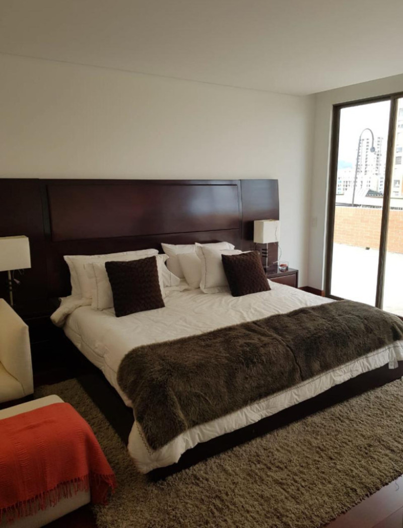 COD. 3211. Descubre este exclusivo apartamento Domotizado de 222 mts más 137 mts de terraza, con excelente iluminación natural. Conjunto estrato 6, Club House, cancha de squash, piscina cubierta, espacio para home office, dos salones sociales, zona de juegos infantil, zona para mascotas, zona BBQ y vigilancia. Amplia sala con doble chimenea y acceso a terraza, comedor, baño de servicio, cocina integral semi abierta, zona de lavandería, de planchado y patio, sala de TV o estudio, cuarto y baño de servicio, tres habitaciones, cada una con baño privado, habitación principal con Vestier, doble lavamos y tina. 3 parqueaderos cubiertos, dos en línea y uno independiente. Ubicado en una zona residencial con fácil acceso a colegios, supermercados y transporte público, vías de acceso: Avenida Boyacá y Cl 153. ¡Agenda tu visita ahora y haz de este lugar tu nuevo hogar!