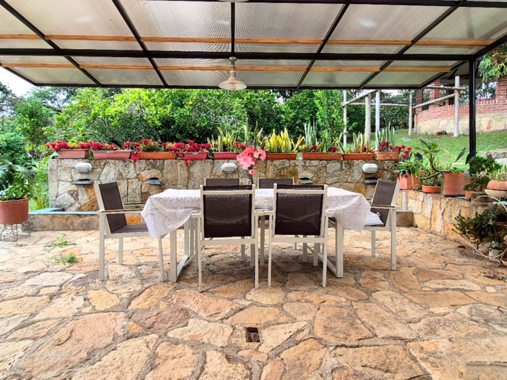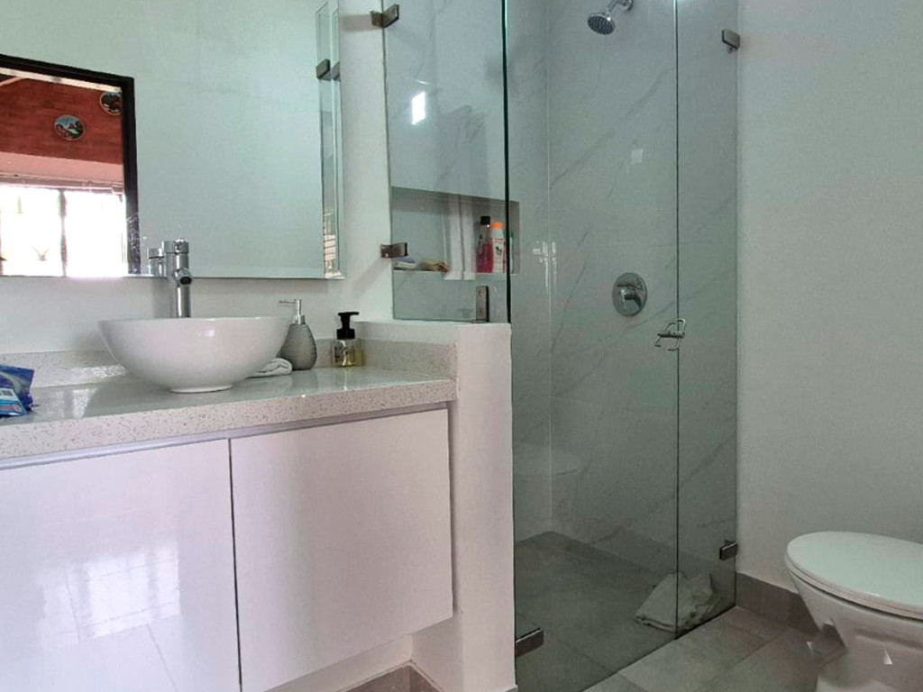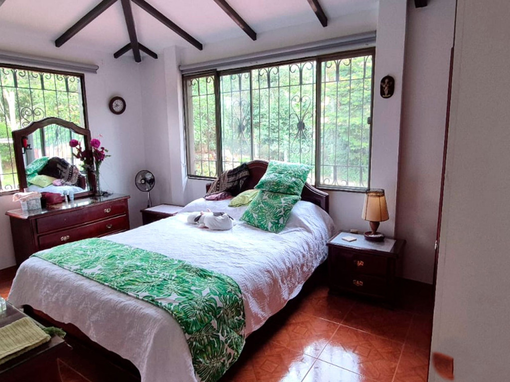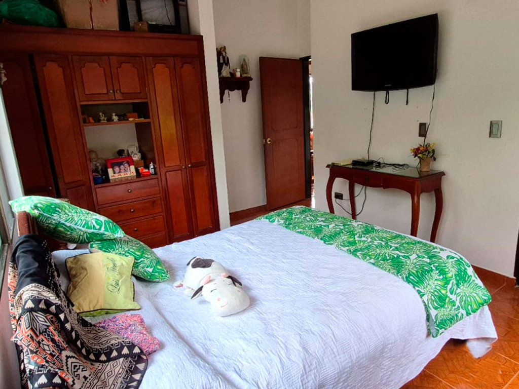 Espectacular casa campestre en conjunto cerrado en Fusagasugá, con un lote privado de 1.050 m² y un área construida de 220 m². En el primer piso cuenta con sala-comedor, cocina, zona de lavandería, un baño completo y una amplia habitación con vestier. En el segundo piso se encuentra una sala de estar o sala de TV, cuatro habitaciones (dos con balcón), incluyendo la alcoba principal con baño privado y tina, además de un baño social. La propiedad ofrece amplias zonas verdes con árboles frutales, área social al aire libre cubierta, quiosco y parqueadero con capacidad para 2 vehículos. El conjunto residencial complementa esta experiencia campestre con piscina, zona de BBQ y hermosos jardines, ideales para disfrutar en familia en un entorno natural.