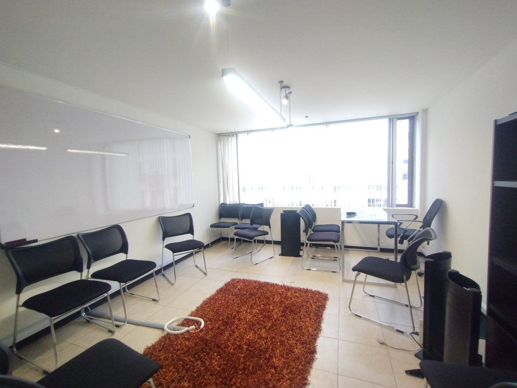 Cod. 3245 Acogedora oficina amoblada, muy iluminada de 37M2, ubicada en tercer piso con ascensor; edificio con vigilancia 24 horas, parqueadero de visitantes, planta eléctrica y recepción. La oficina tiene capacidad para 6 puestos de trabajo, cuenta con sala de juntas, conectividad total en cada puesto de trabajo, baño y 2 parqueaderos cubiertos en línea. Sector exclusivo de la ciudad, comercial con facilidad de transporte público, vías de acceso, Carrera 15, Calle 100 y Calle 95.